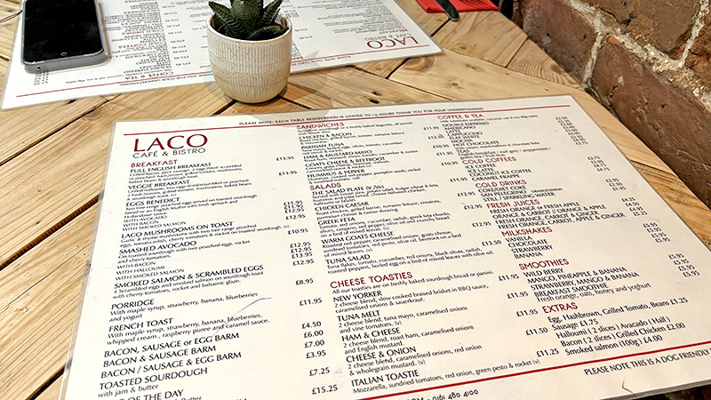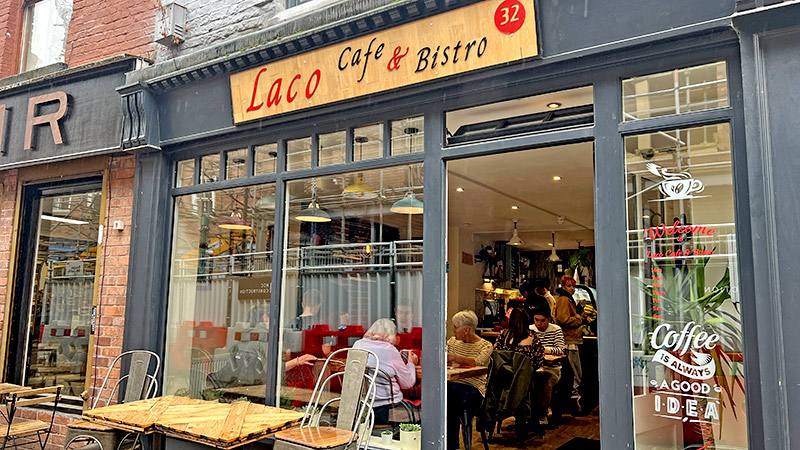 翌日、ストックポート中心地にあるカフェLaco Café & Bistroへ朝食を食べに行くことに。