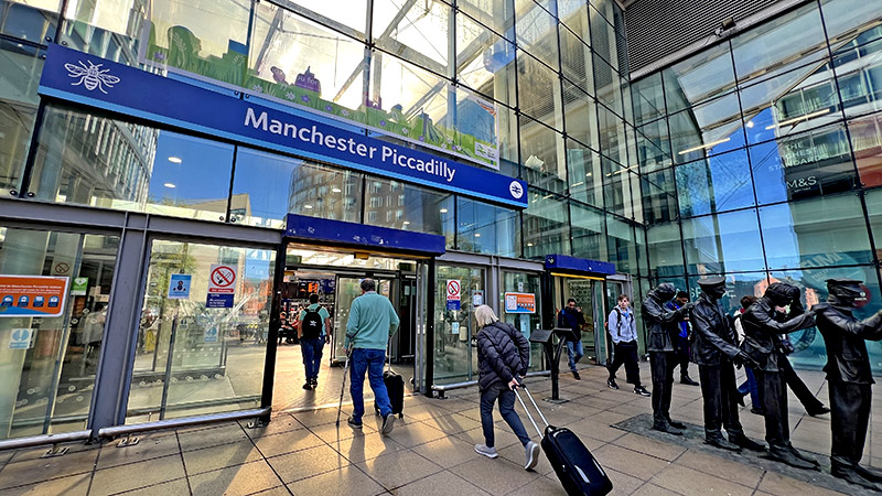 鉄道で一駅約10分の乗車でManchester Picadellyへ。