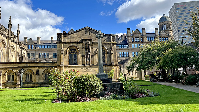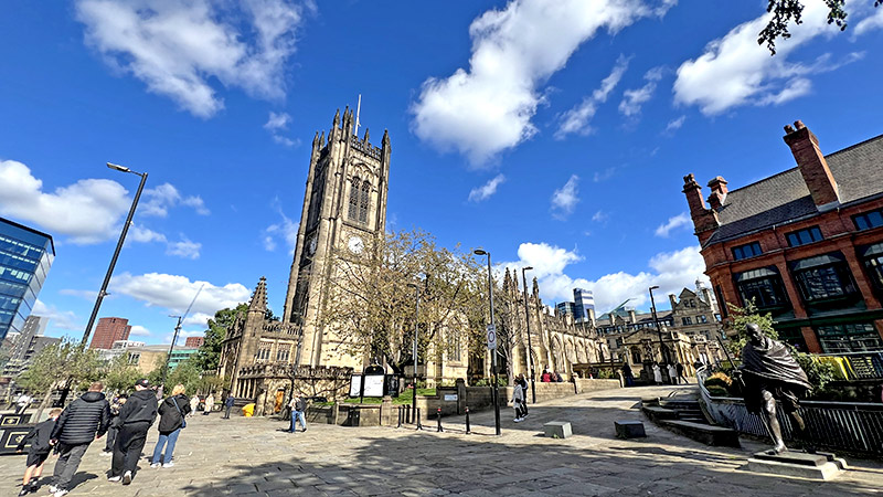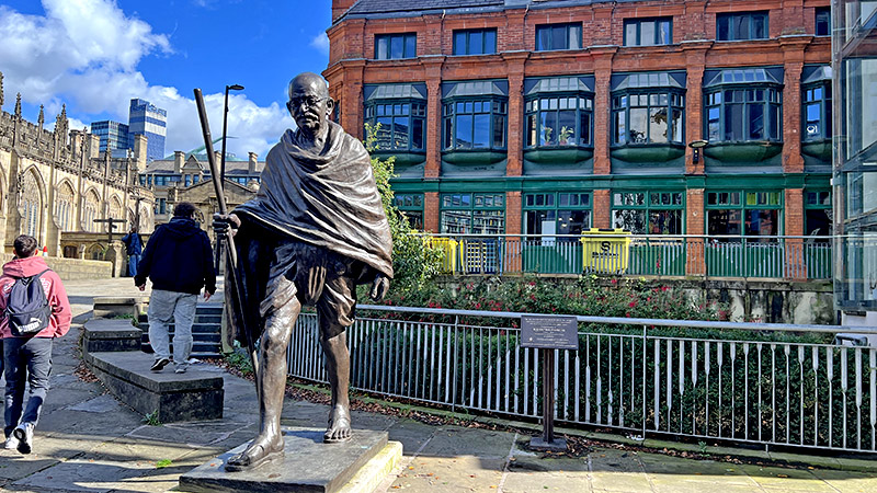 なんでマンチェスターにガンジーが?と思って調べたところ「産業革命期にインドから綿を輸入して発展し、1931年にはガンジーが訪問して労働者と交流。その歴史を踏まえ今日では多文化共生と平和の象徴としてガンジー像が設置された」とのこと。